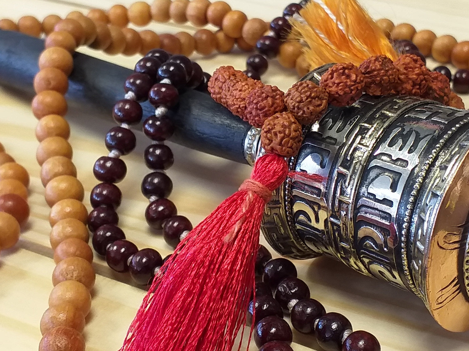 Buddhist prayer beads or mala beads are traditionally used to count mantra...