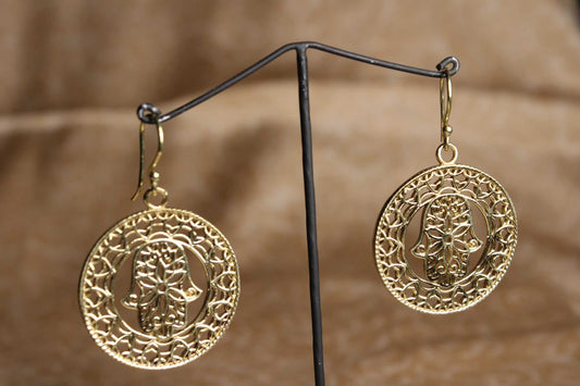 Hamsa Brass Earrings