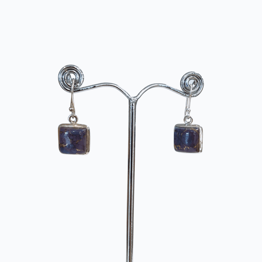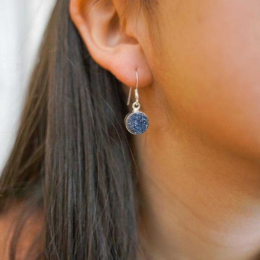 Toro Round Navy Druzy Gemstone Sterling Silver Earrings