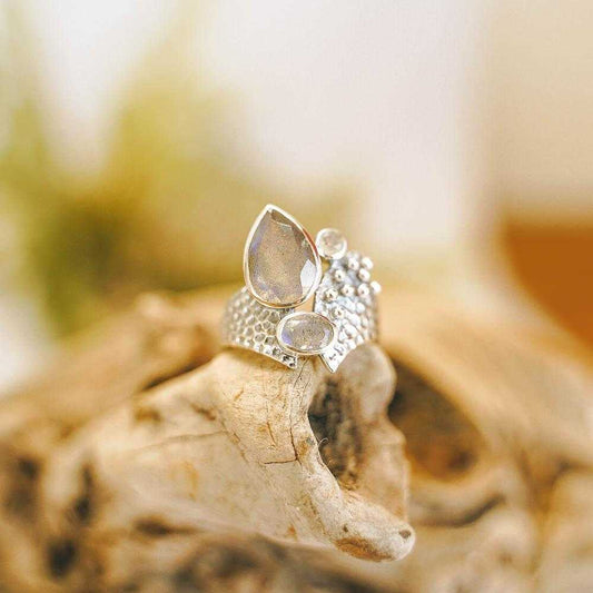 Glaedr Teardrop Gemstone Sterling Silver Rings